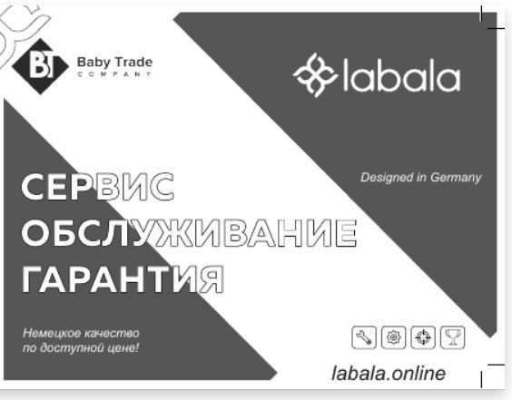 Соблюдая принципы надежности и качества - производитель сопровождает Вас на всем протяжении эксплуатации коляски, предлагая максимальную гарантию на 3 года, а также бесплатное сервисное обслуживание 2 раза в год на весь гарантийный период. Выбирая Labala Вы можете быть уверенны в безопасности и надежности продукции, а Ваши прогулки с малышом будут комфортными!